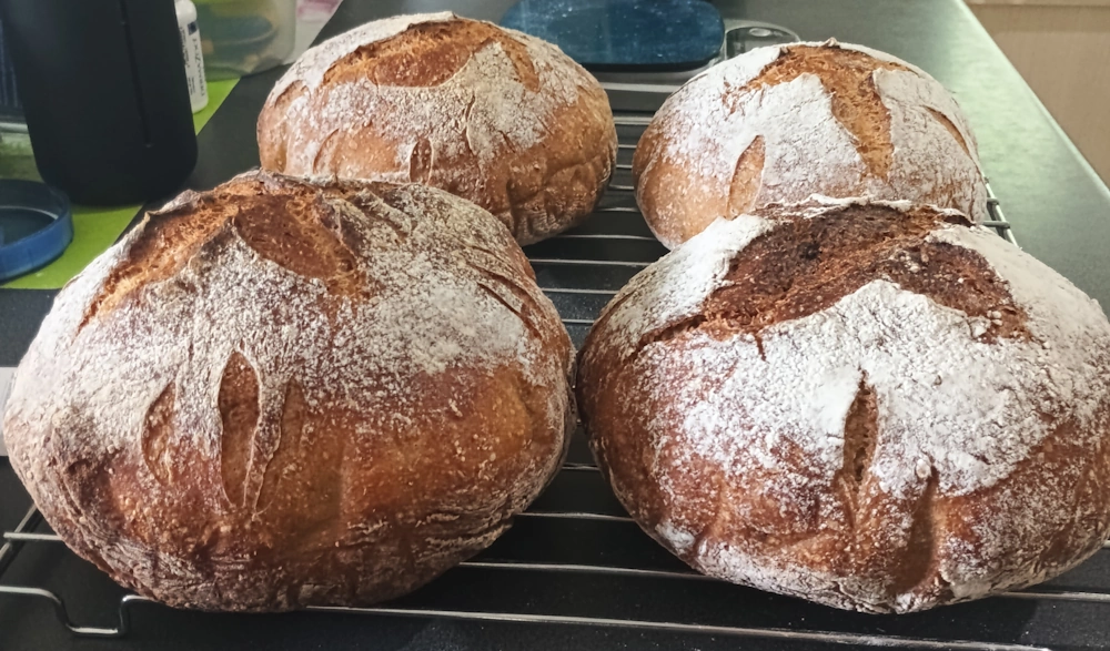 Rye, whole wheat and bread flour, water, salt, anise and fennel seeds.