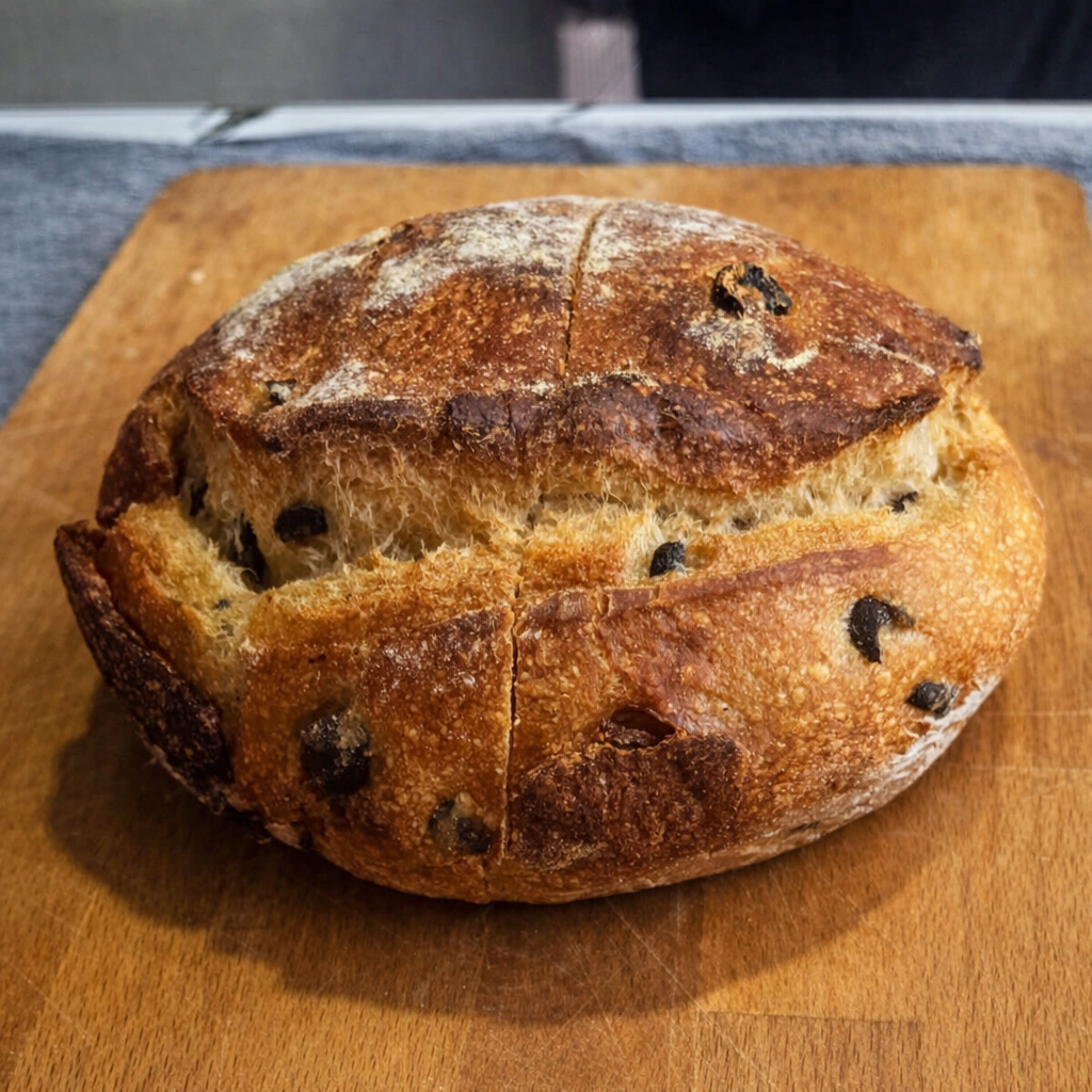 Black olives, parmesan cheese cubes, whole wheat/rye/bread flour, water and salt.